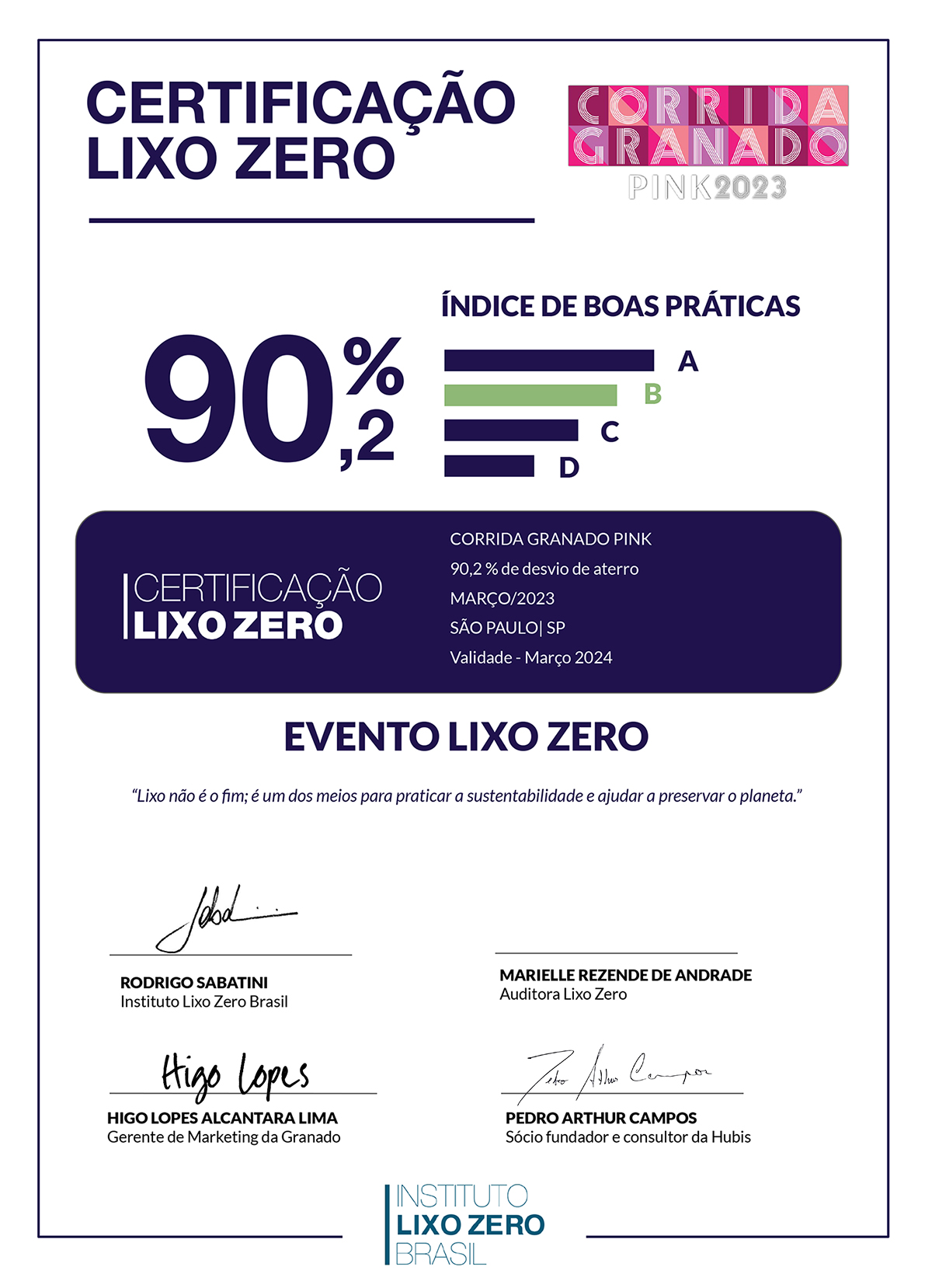 O HUBIS foi convidado pela empresa Granado Pharmácias para implementar a Gestão de Resíduos Sólidos dos eventos da marca. A Corrida Granado Pink 2023, em São Paulo, foi a primeira corrida certificada como Lixo Zero da cidade, através da consultoria HUBIS.